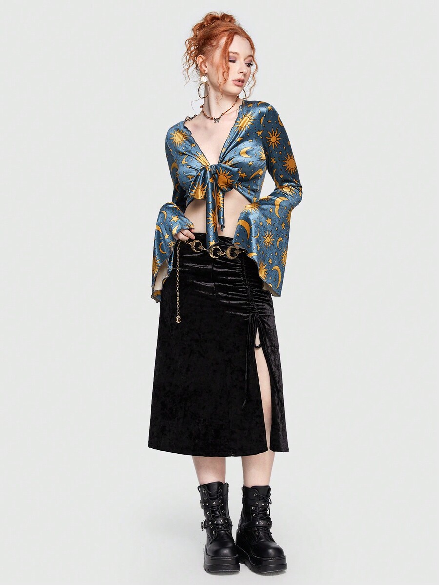 Hippie Falda con cordón fruncido de muslo con abertura de terciopelo