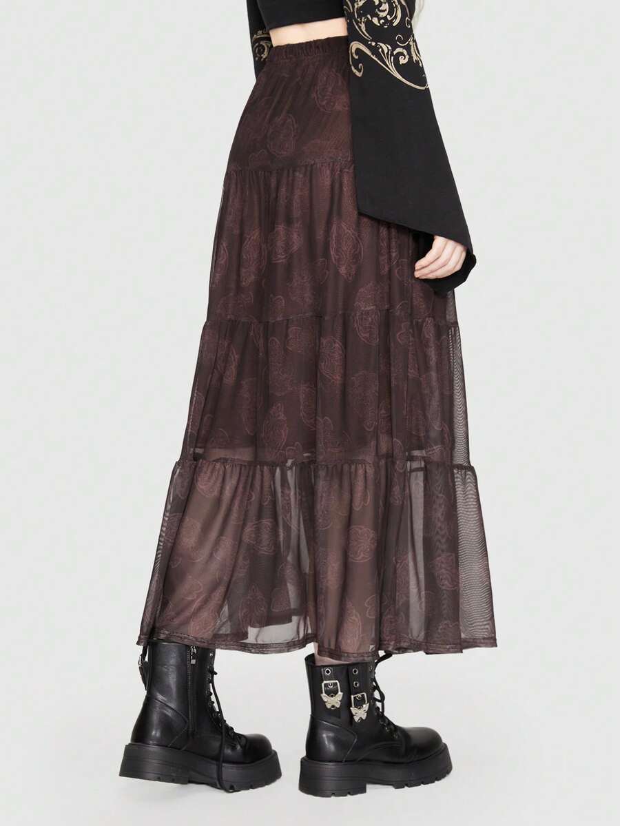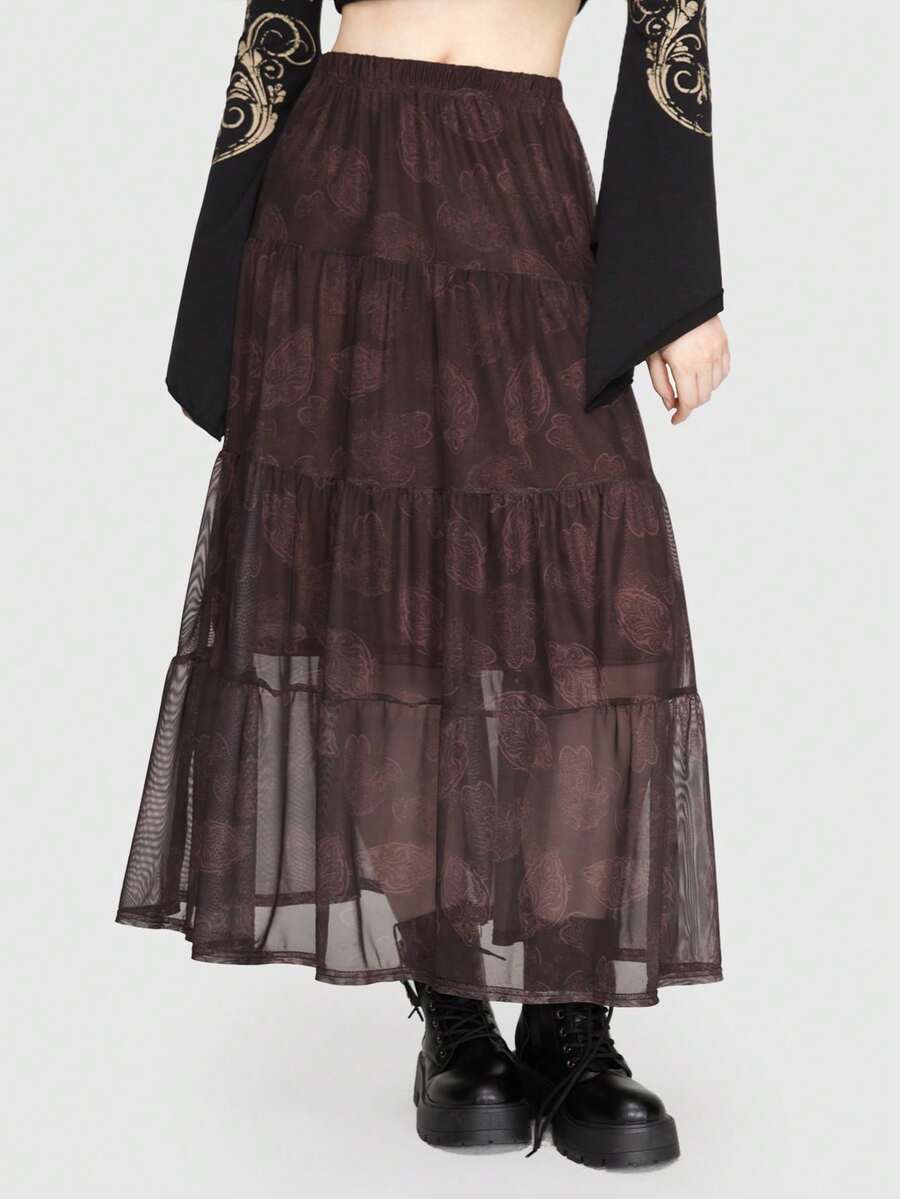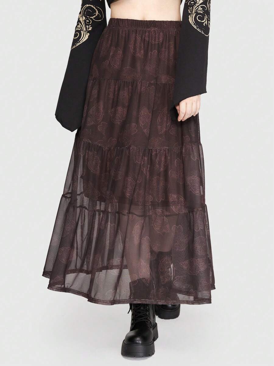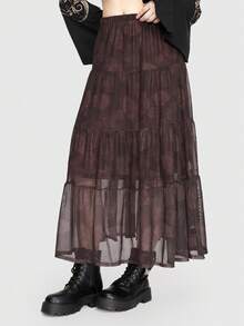 Hippie Falda Con Dobladillo Con Volantes Y Estampado De Grupo Sin Cinturón