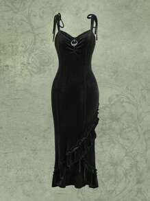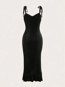 Hippie Vestido de tirantes con diseño de parche ribete con fruncido de hombros con cordón