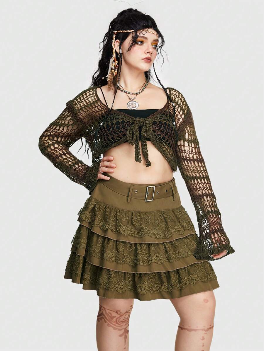 Hippie Talla grande Cárdigan crop con cordón delantero