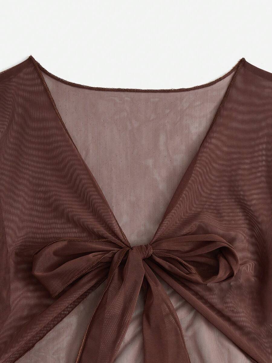 Hippie unicolor con cordón delantero Top crop & con estampado de retazo Vestido de tirantes