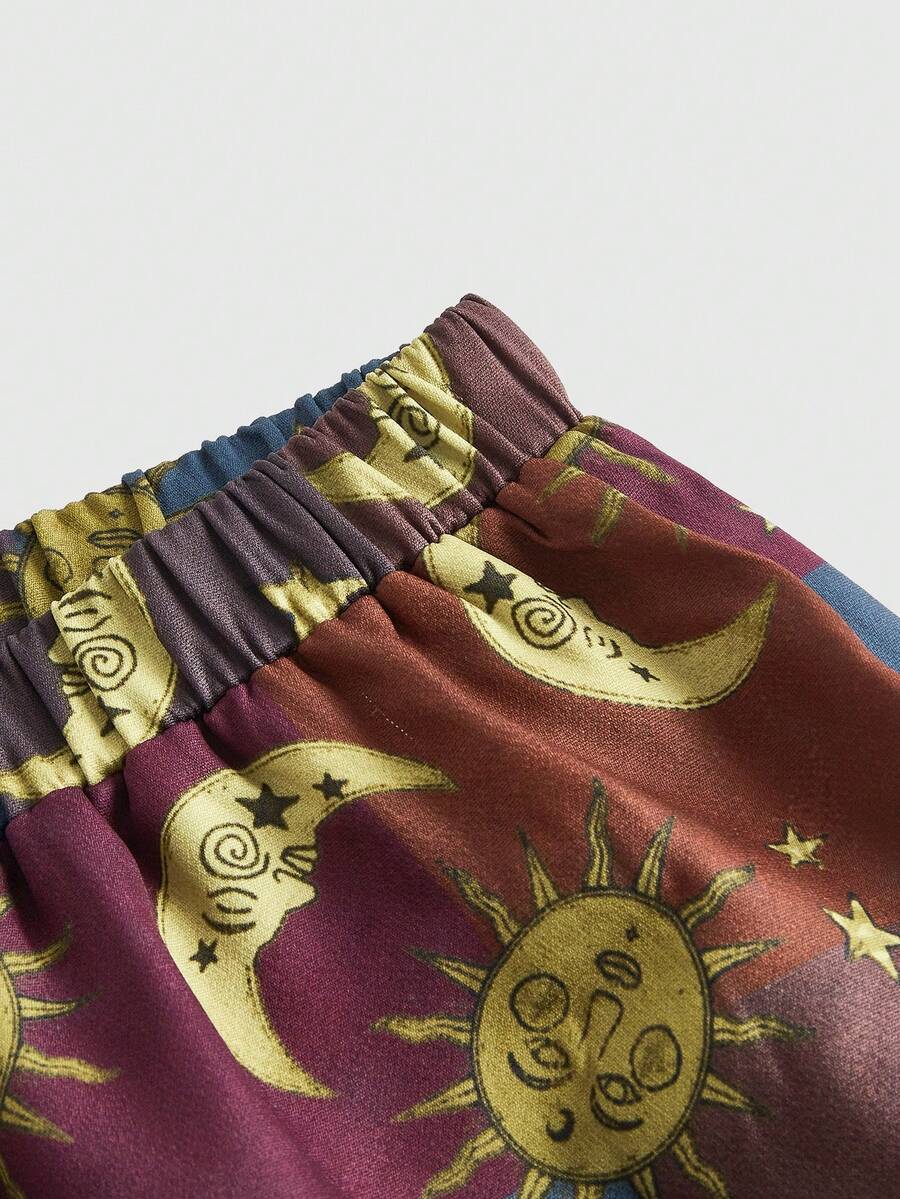 Hippie Pantalones de pierna ancha con estampado de sol y luna