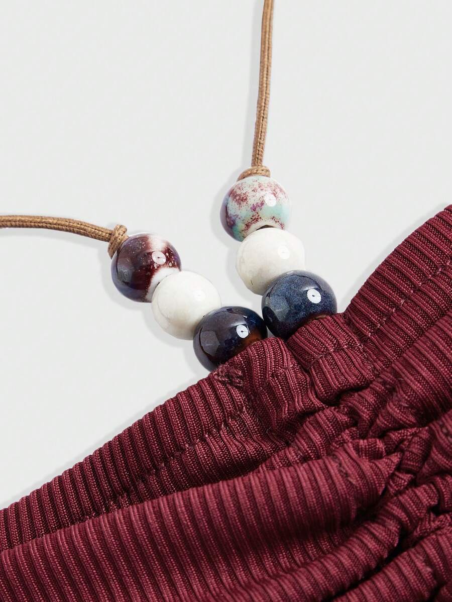 Hippie Top De Mujer Con Cuello Halter Y Cuentas Vintage