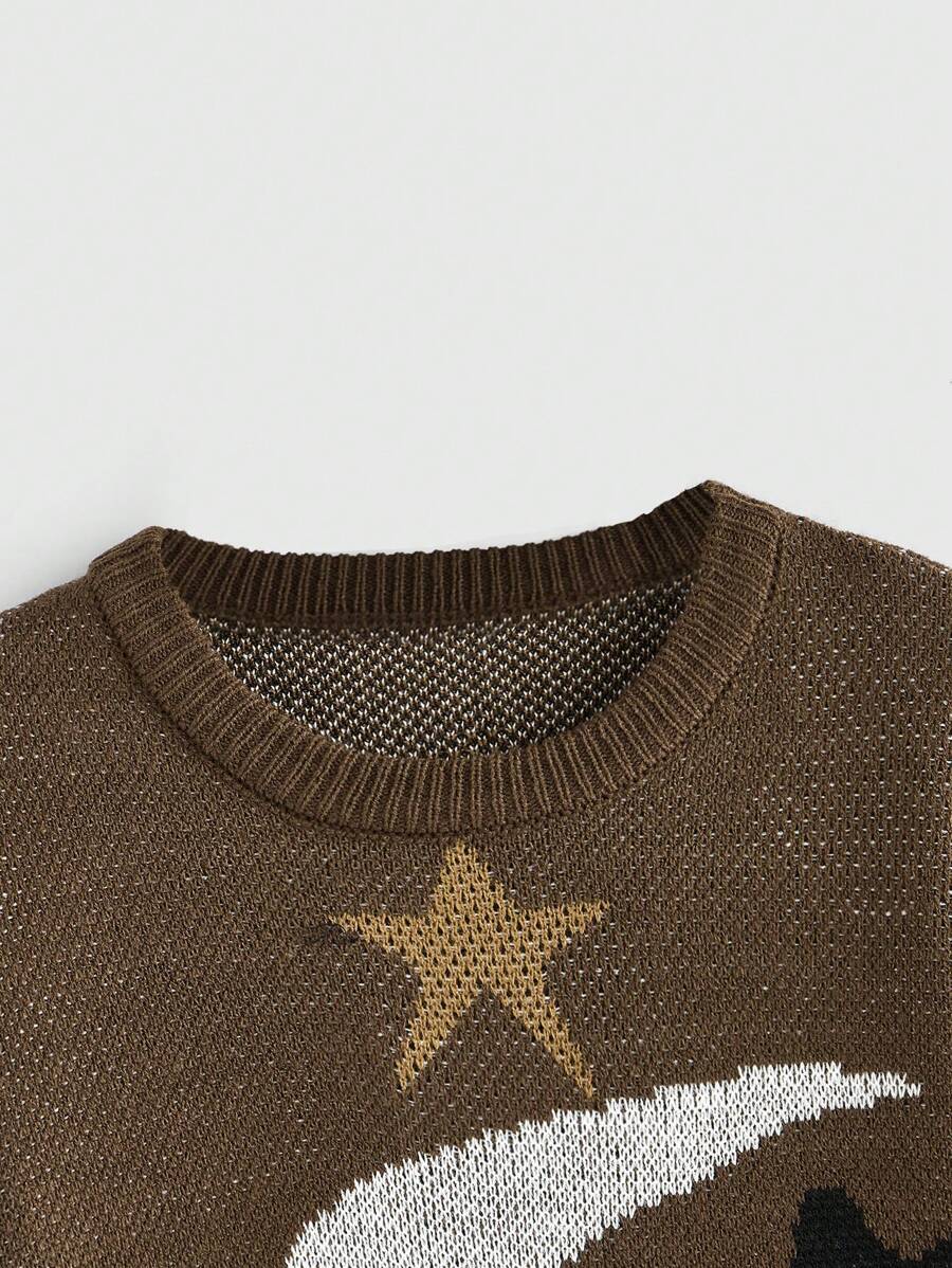 Hippie Jersey casual de cuello redondo con hombros caídos y manga larga con estampado de luna y estrellas de Halloween para otoño/invierno para mujer