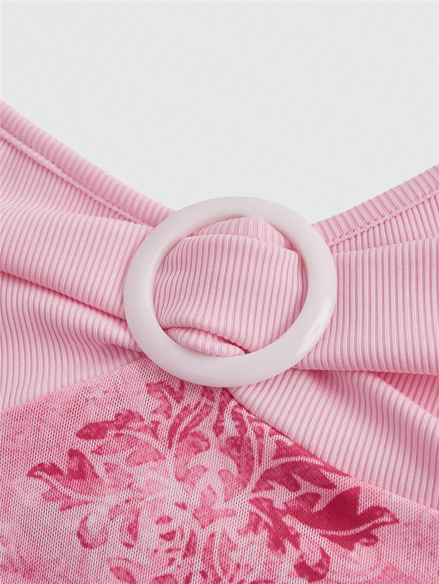 Hippie Camiseta sin mangas de mujer con cuello halter de verano, dobladillo asimétrico y estampado floral