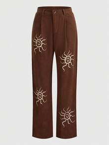 Hippie Pantalones Largos De Pana Con Estampado De Sol Para Mujer