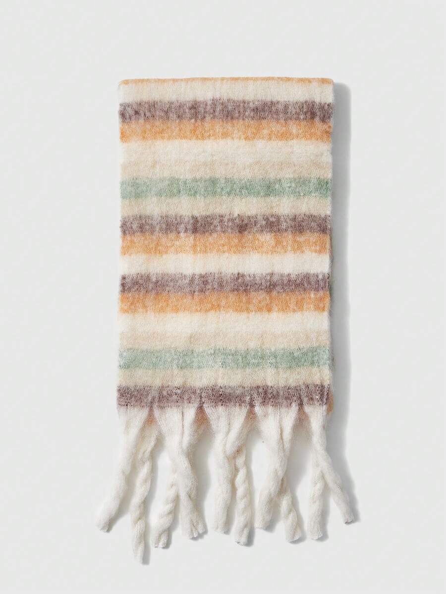 Hippie Bufanda Gruesa Con Flecos A Rayas Coloridas Para Mujer Para Mantener El Calor