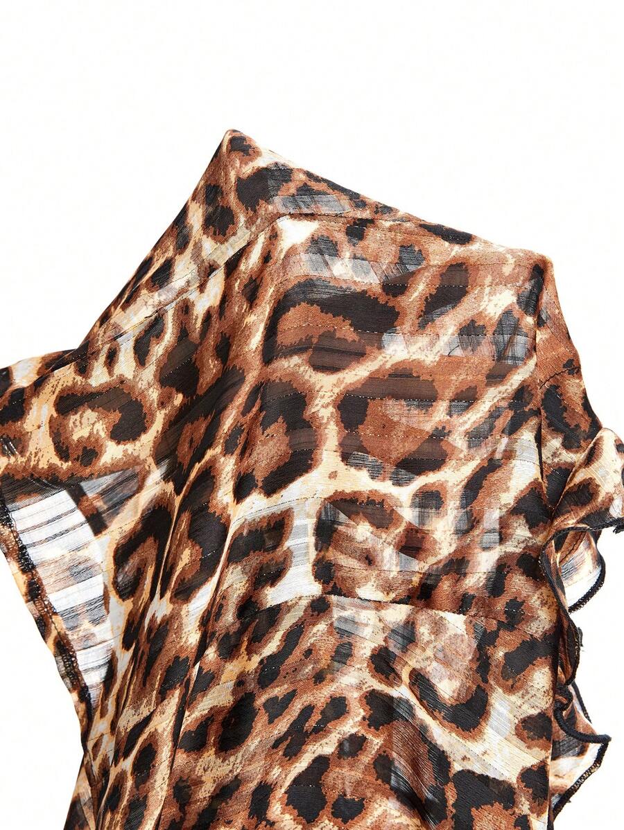 Hippie Blusa de gasa transparente con mangas acampanadas y cordones con estampado de leopardo para mujer, estilo Y2K