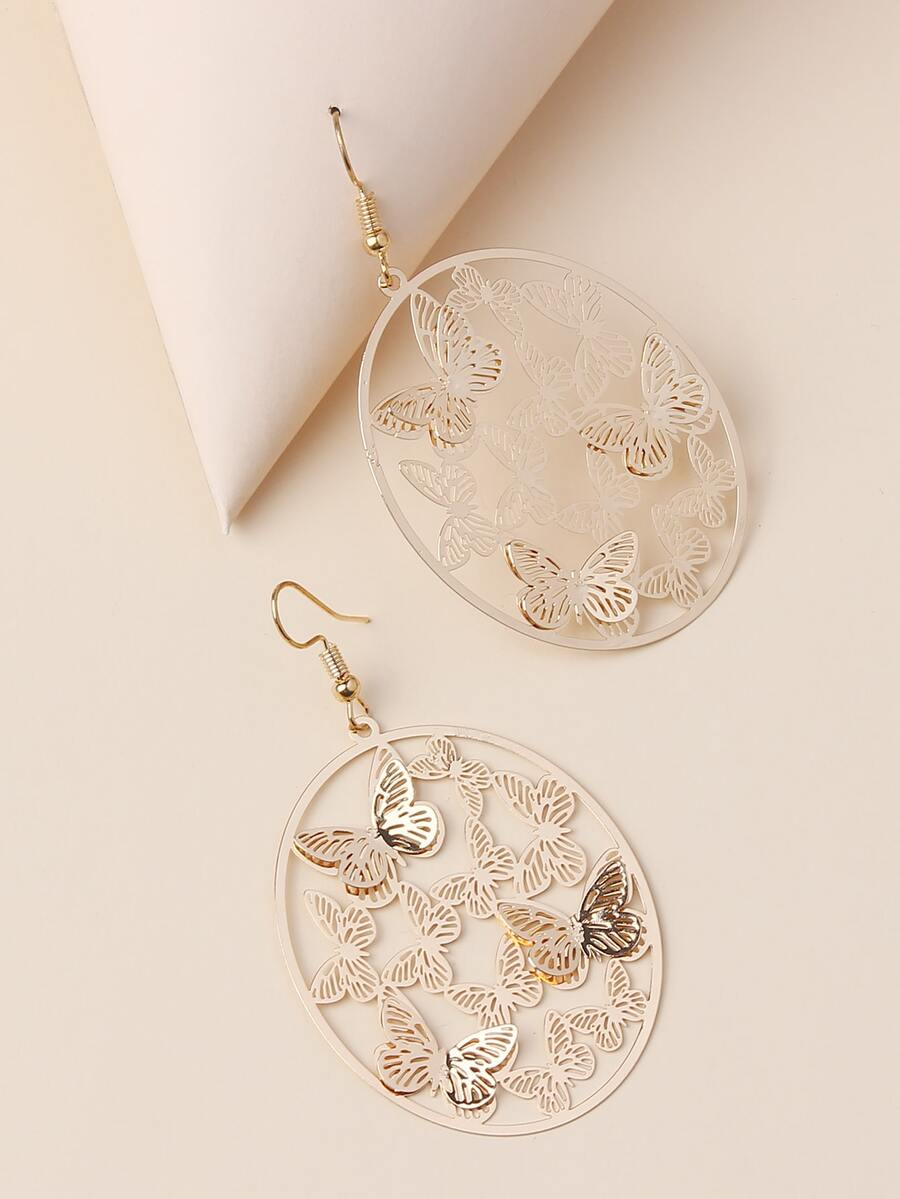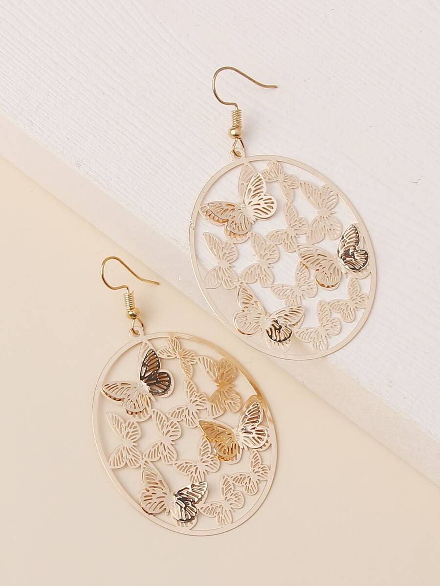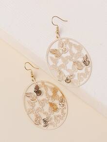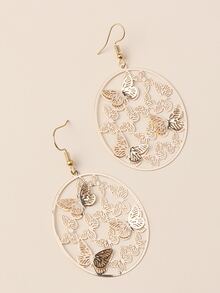 Aretes colgantes redondos de mariposa hueca