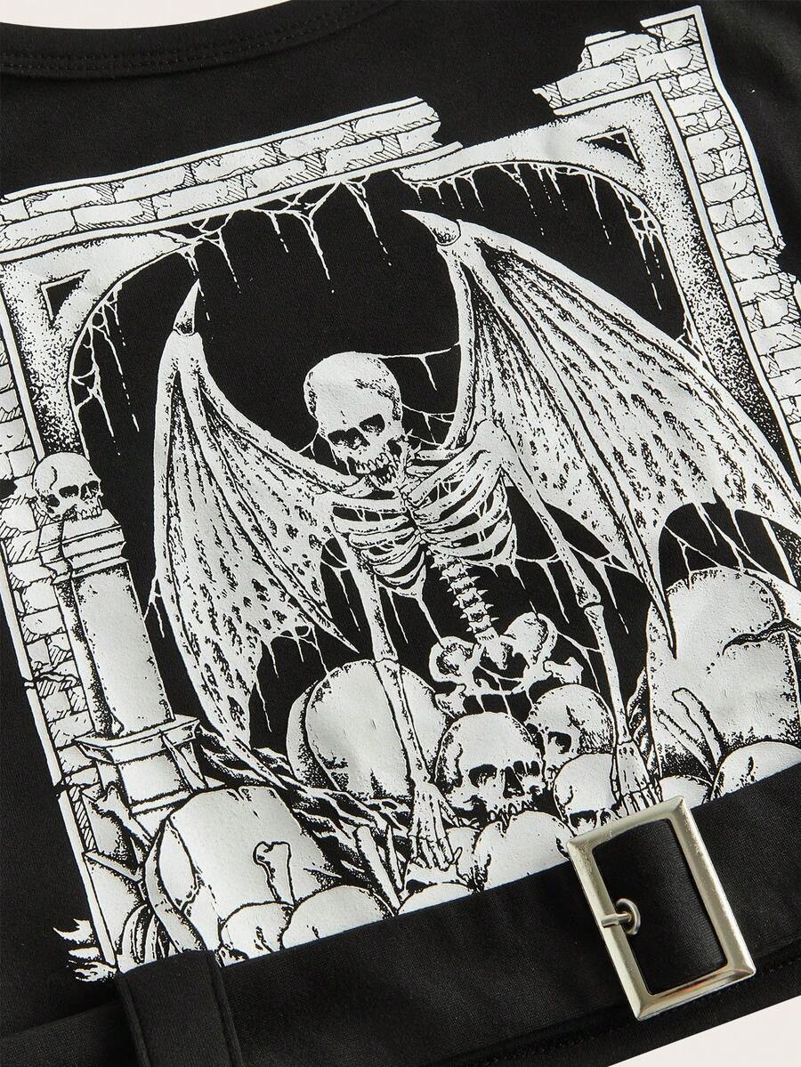 IamYouth Goth Top camiseta con gráfico de calavera, ojetes de grommet y hebilla, para la escuela