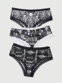 IamYouth Conjunto De Lencería De Talla Grande Con Estampado De Calavera Y Encaje