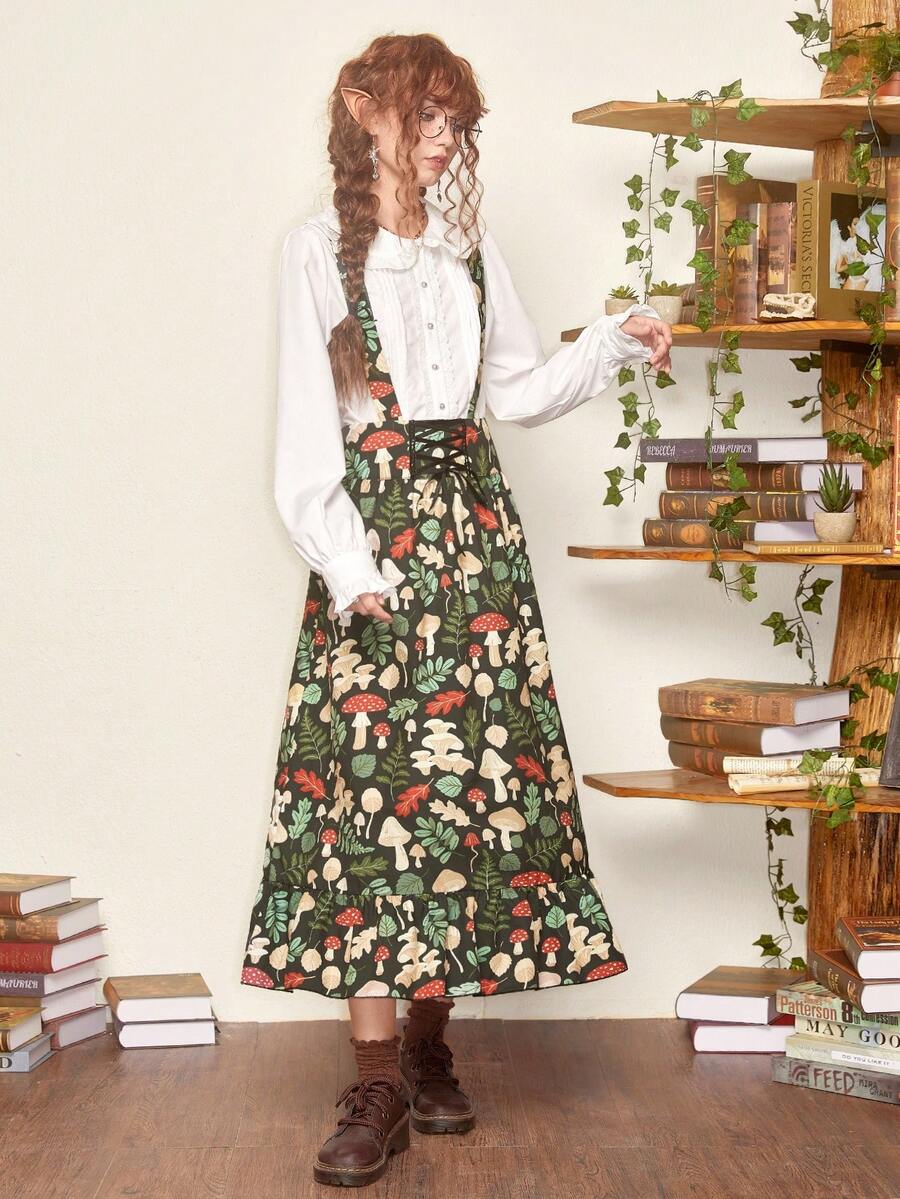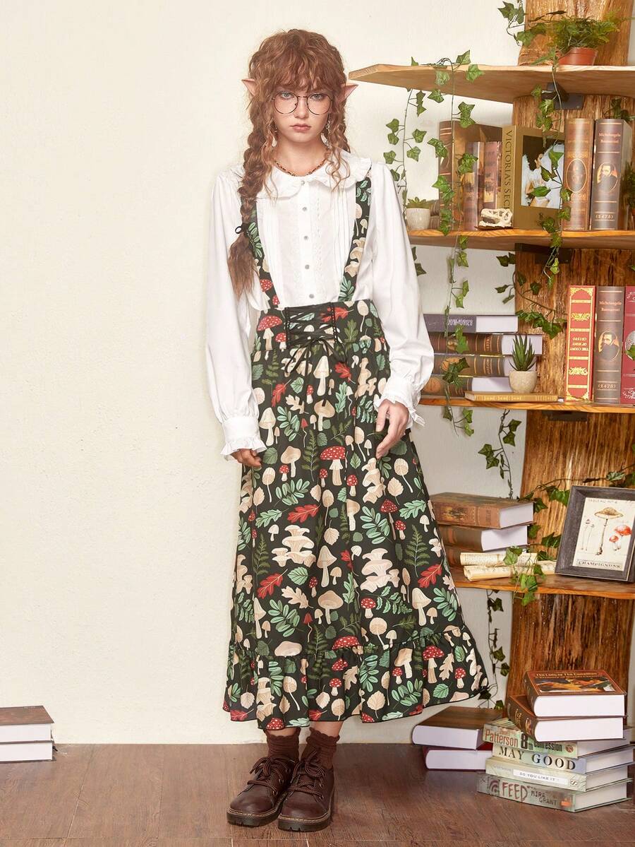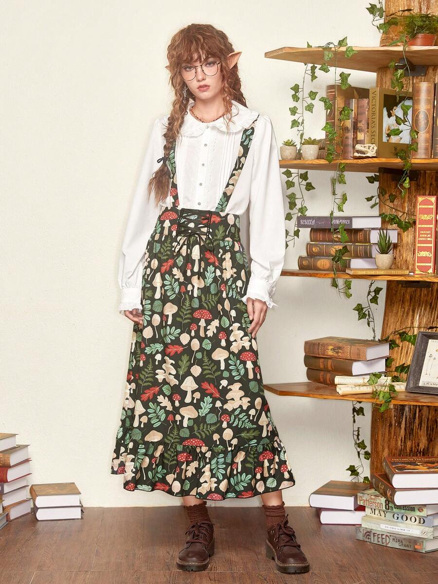 Inna Moreva Fairycore Falda de tiras con estampado de seta sin camisa