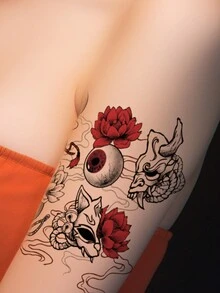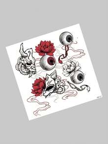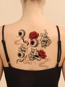 J-Fashion Etiqueta engomada del tatuaje temporal ojo con con estampado de flor