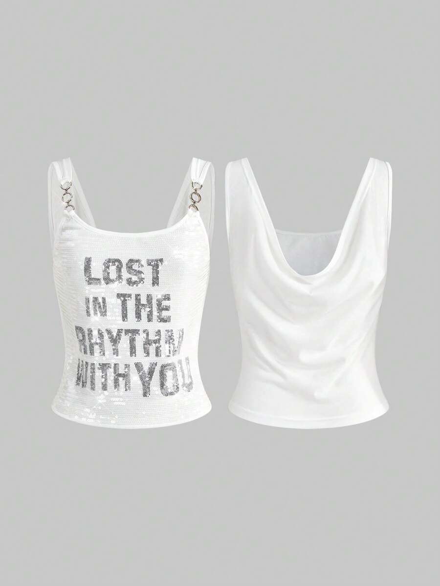 J-Fashion Top sin espalda con decoración de lentejuelas para mujer