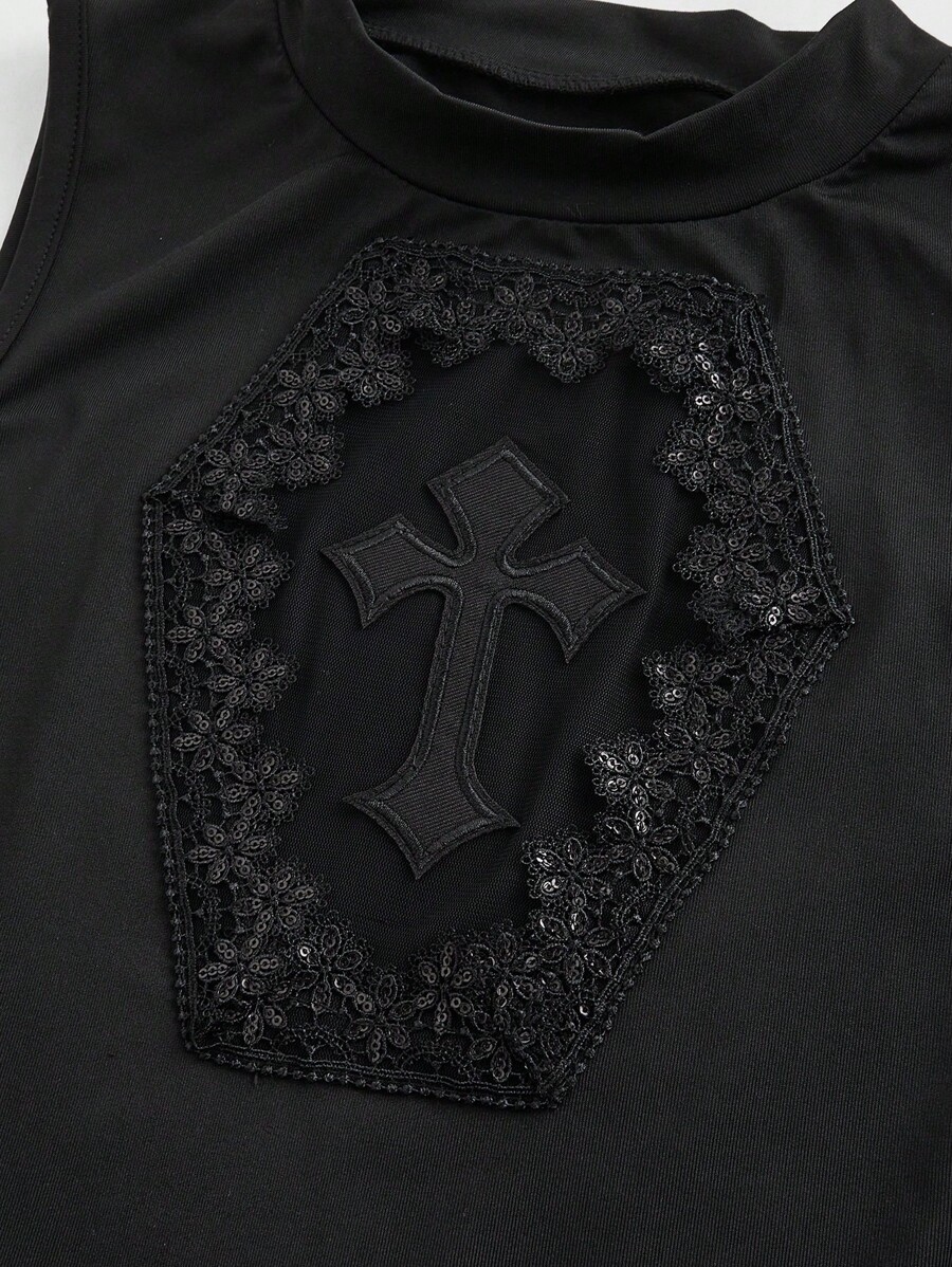J-Fashion Top de tirantes con cuello cruzado bordado y calado de moda para mujer