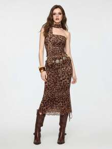 J-Fashion Parte superior con pliegues con estampado de leopardo estilo Y2K para mujer de verano