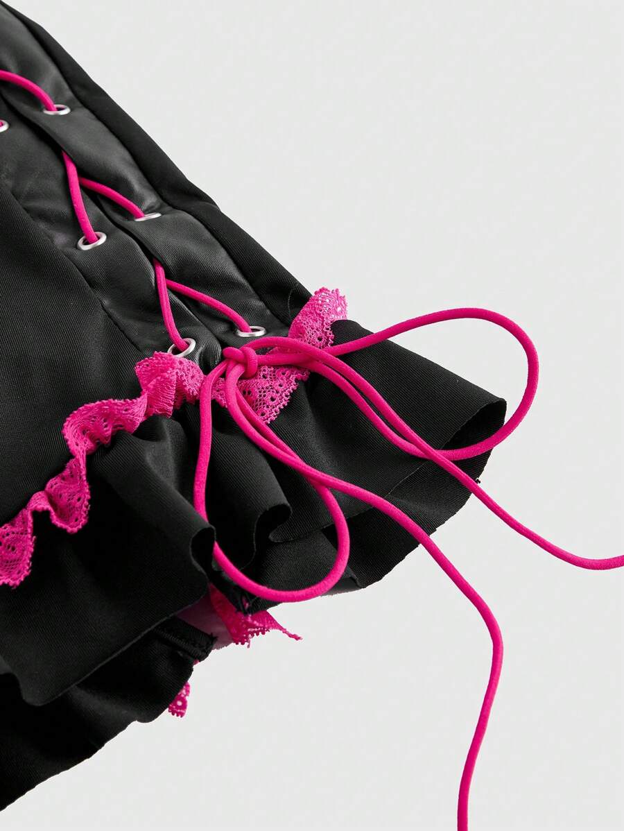 J-Fashion Vestido corto de cuello halter con patrón de calavera y rosa, estilo Y2K baddie