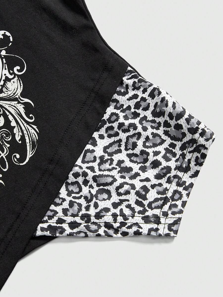 J-Fashion Camiseta con estampado de calavera, pistola y rosa, con encaje de diamantes en estilo Y2K punk, para mujeres