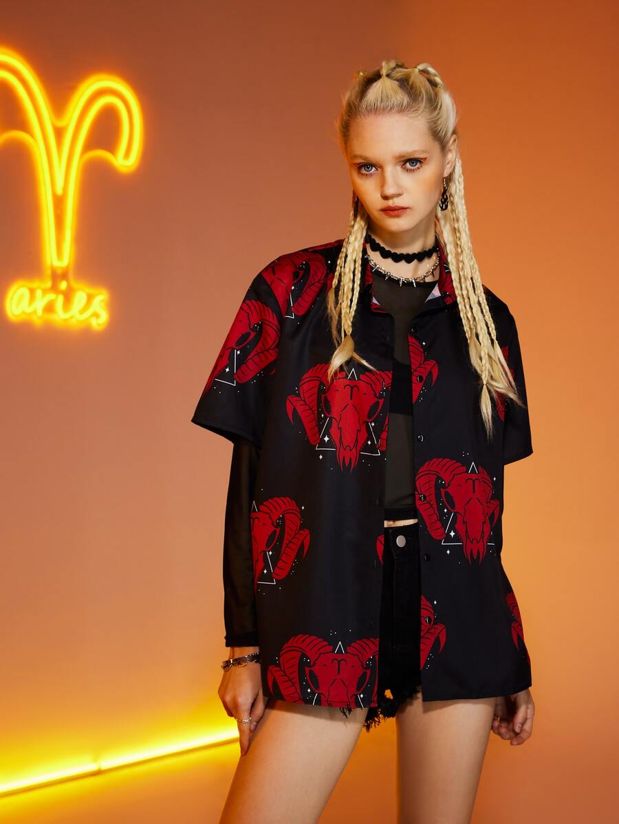 Juandamurai Camisa Aries con estampado de oveja con botón delantero