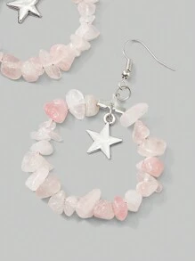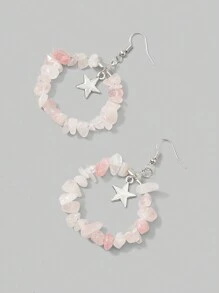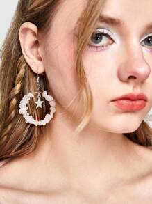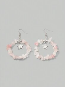 Kawaii 1 par Pendientes largos bohemio con diseño de piedra círculo para mujeres para decoración diaria