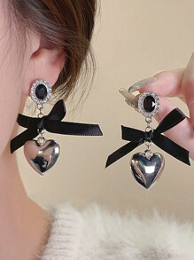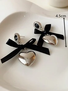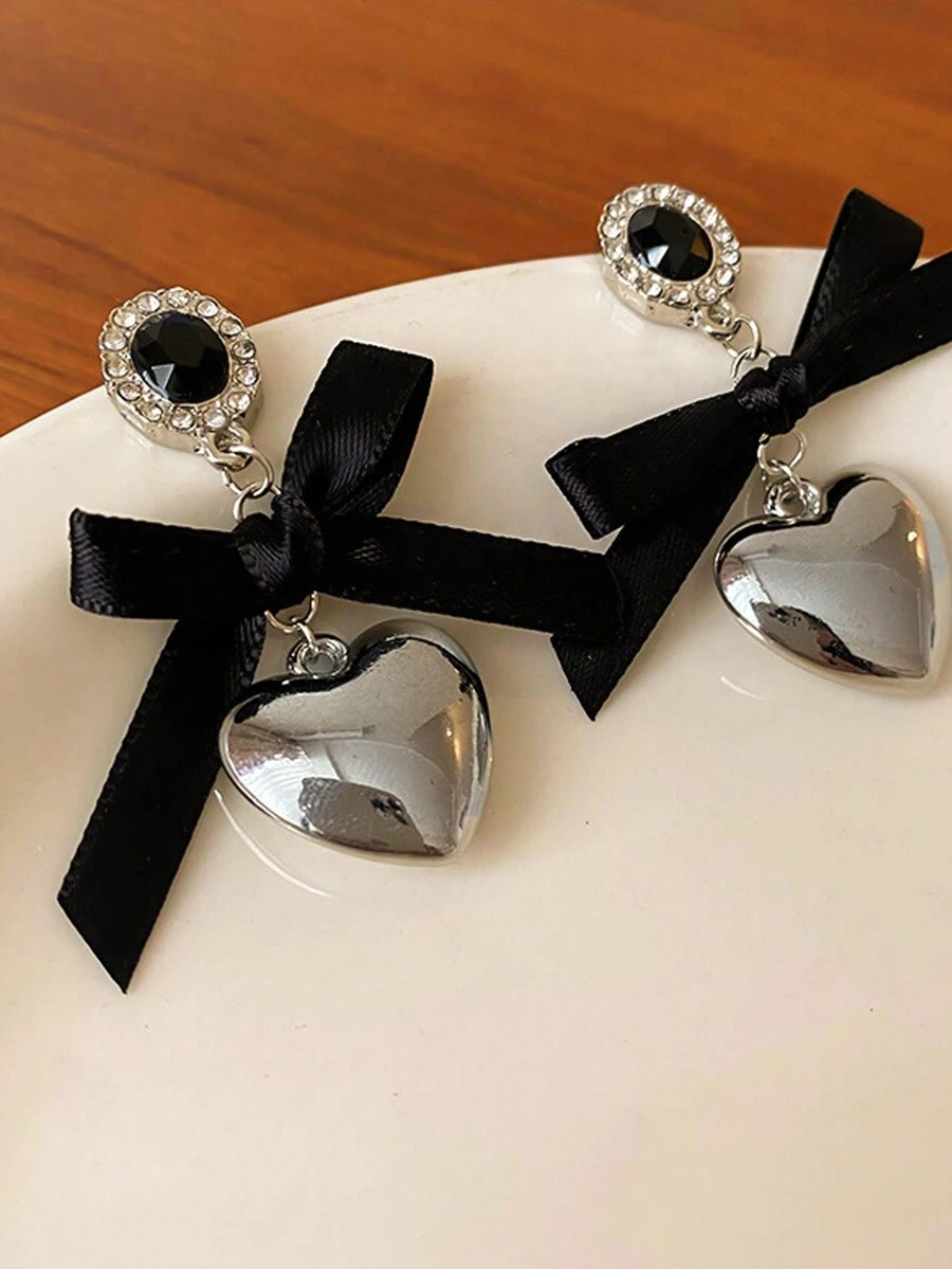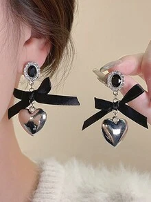 Kawaii 1 Par De Aretes Con Colgante Con Forma De Lazo Y Corazón