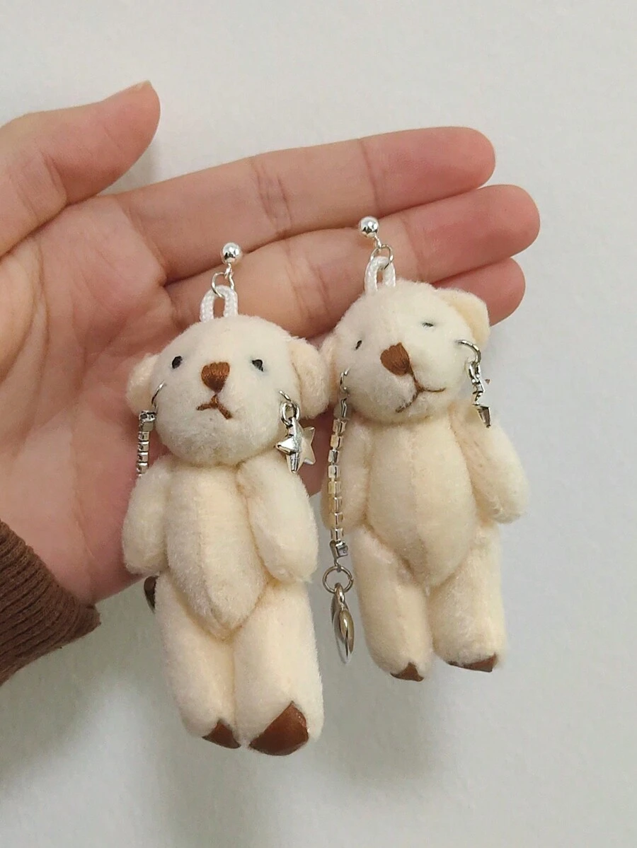 Kawaii 1 Par Lindos Aretes Colgantes Con Forma De Corazón Y Osito De Peluche