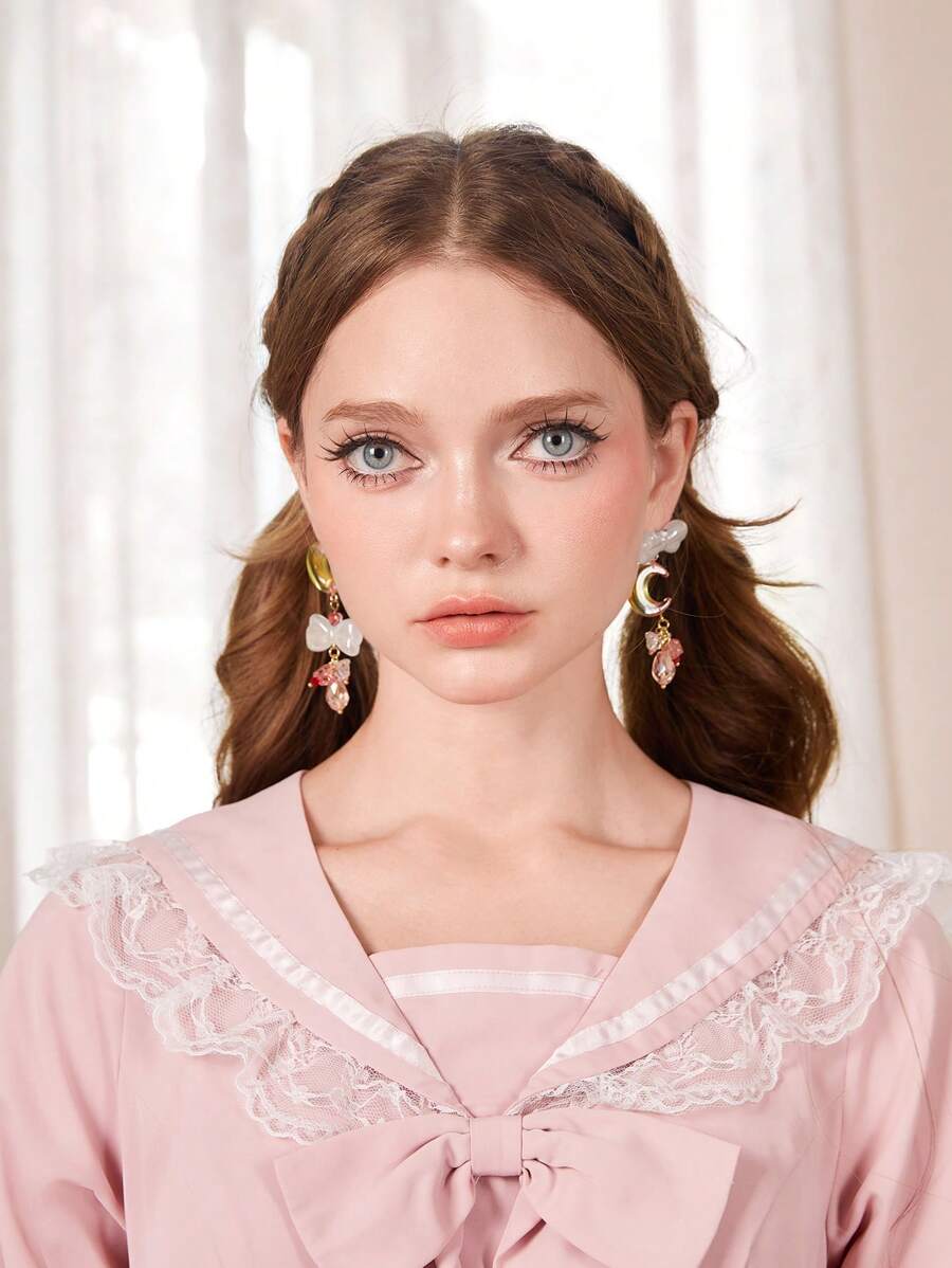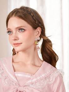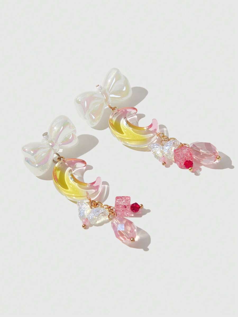 Kawaii 1 par Pendientes moda hierro de aleación lazo & con diseño de luna para mujeres para decoración diaria