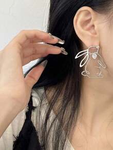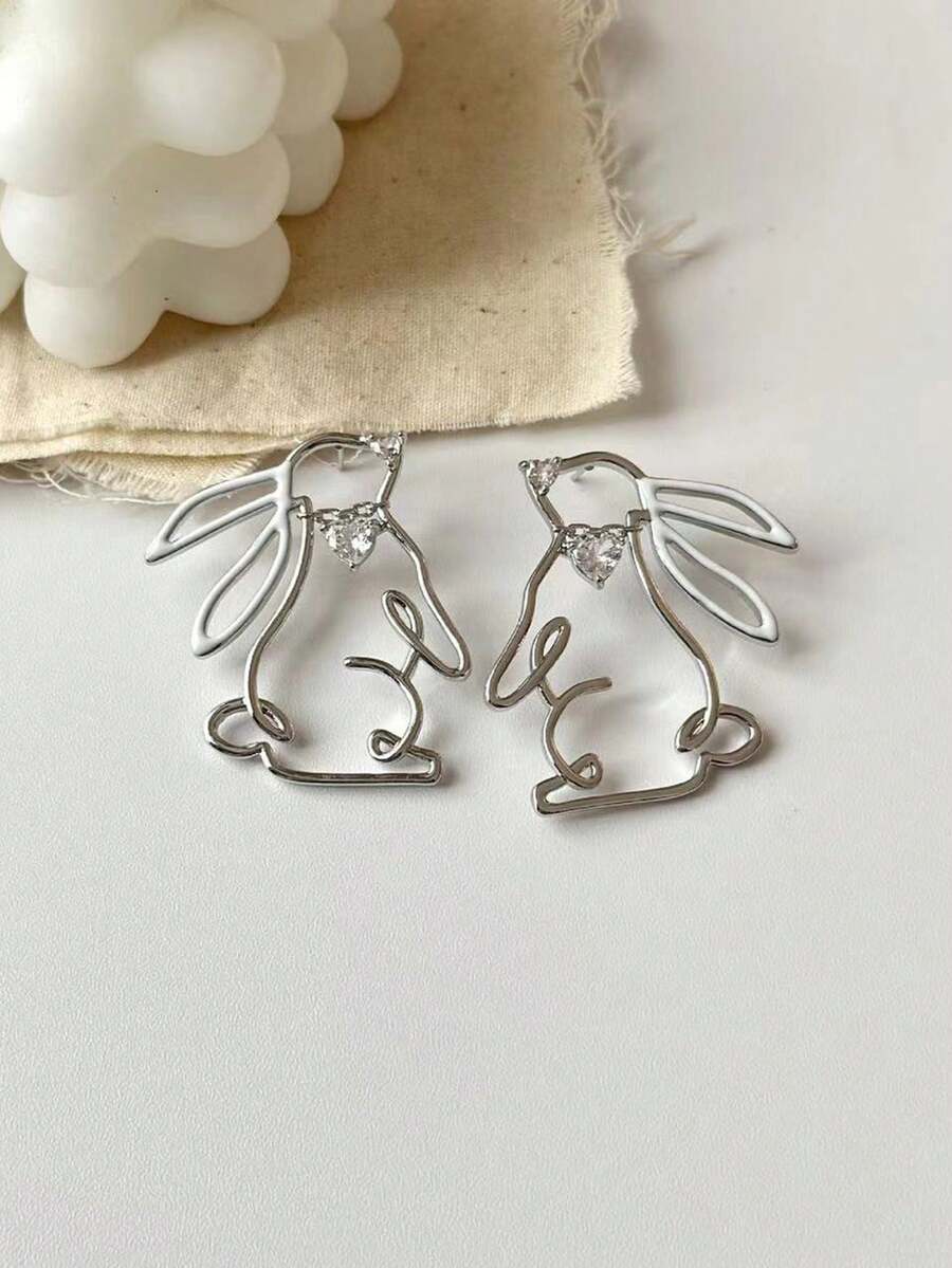 Kawaii 1 Par Aretes Colgantes Con Forma De Conejo Blanco Lindo Al Estilo Francés Con Huecos Decorativos