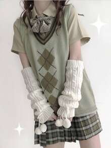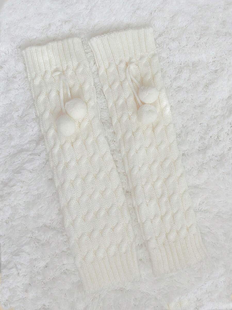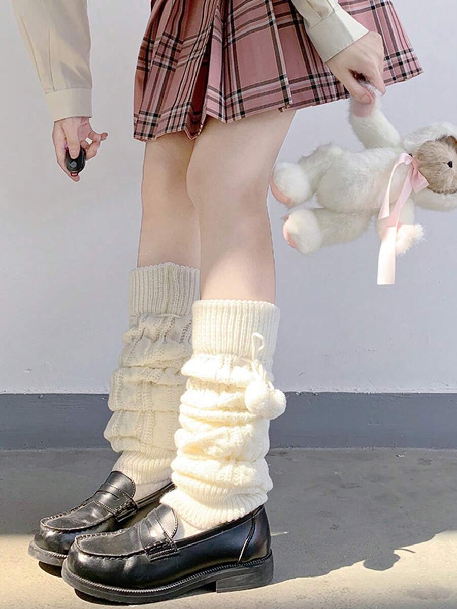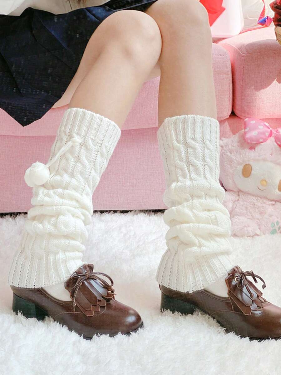 Kawaii Mujer 1 par Calientapiernas unicolor con diseño de pompón