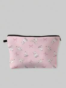 Kawaii 1 pieza Bolsa de maquillaje con cremallera con patrón de gato de dibujos animados