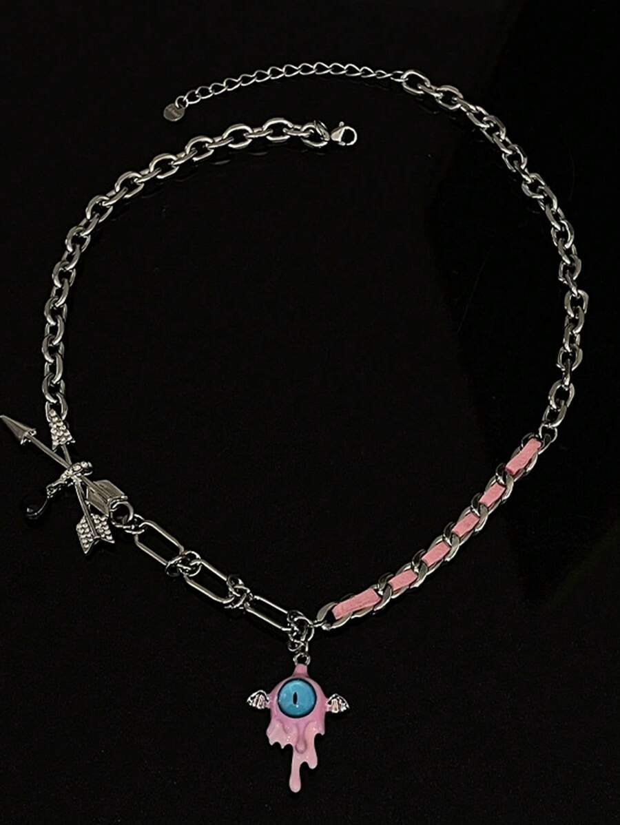 Kawaii 1 pieza Collar con colgante monstruo de dibujos animados