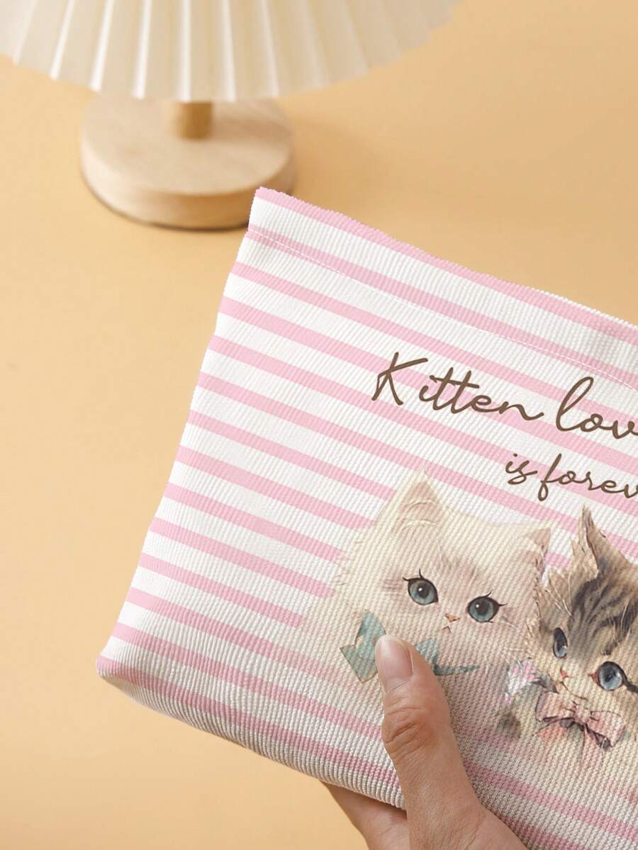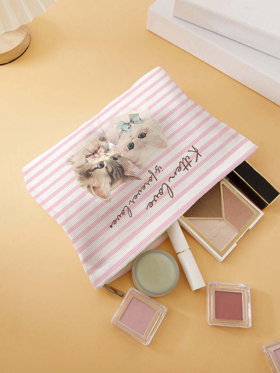 Kawaii 1 pieza Bolso de maquillaje gato & con patrón de rayas