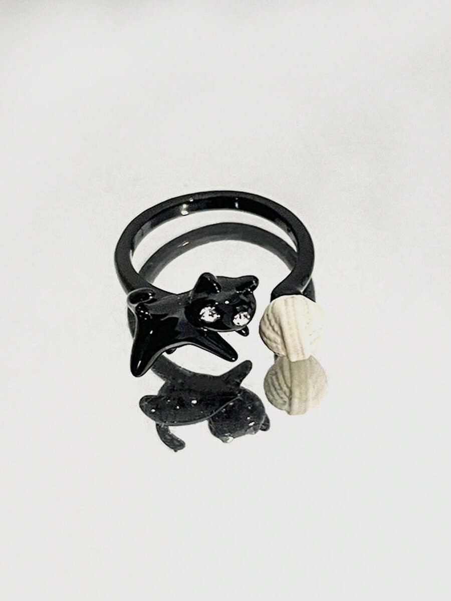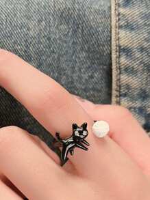Kawaii 1 pieza dulce negro con diseño de gato Anillo con Decoración