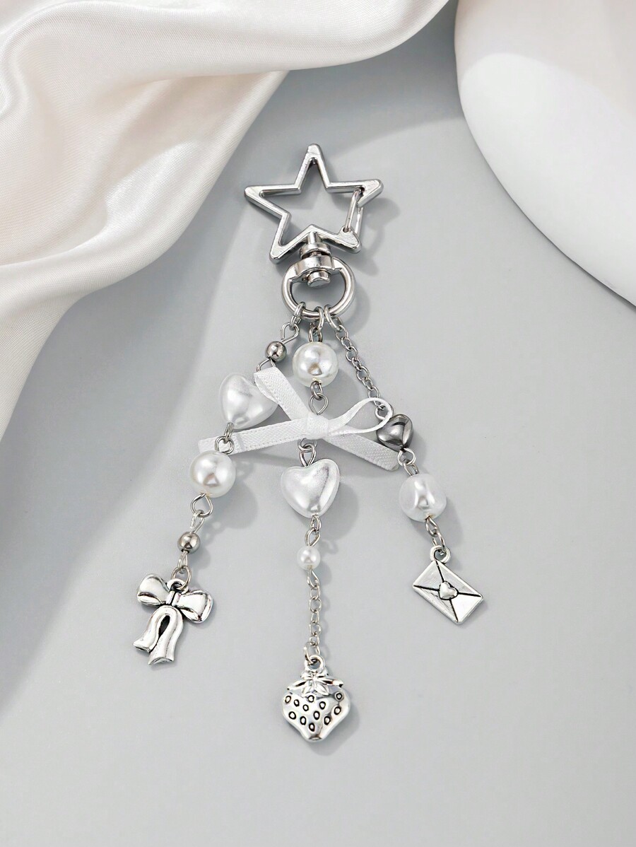 Kawaii 1 pieza Llavero con moño de fresa, borla de perlas falsas, adecuado para bolsos, teléfonos, obsequio para amigos y parejas en San Valentín