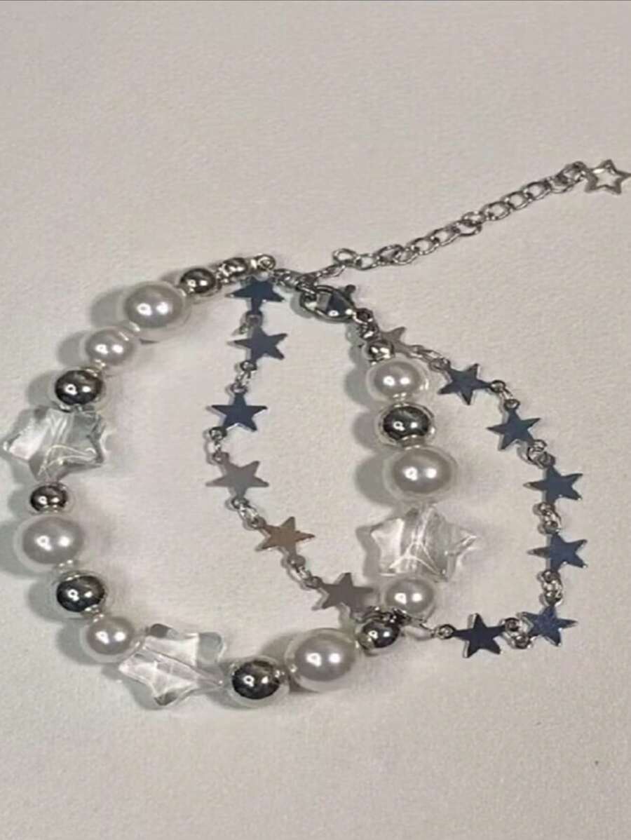 Kawaii 1 Pieza Pulsera De Moda De Aleación De Zinc Con Estrella Y Perlas Falsas Para Mujeres Para Decoración Diaria