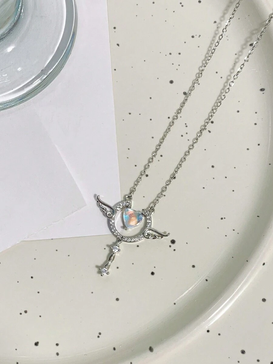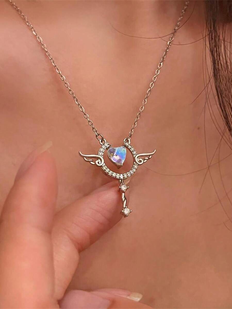 Kawaii 1 Pieza Collar Con Colgante En Forma De Corazón Y Ala