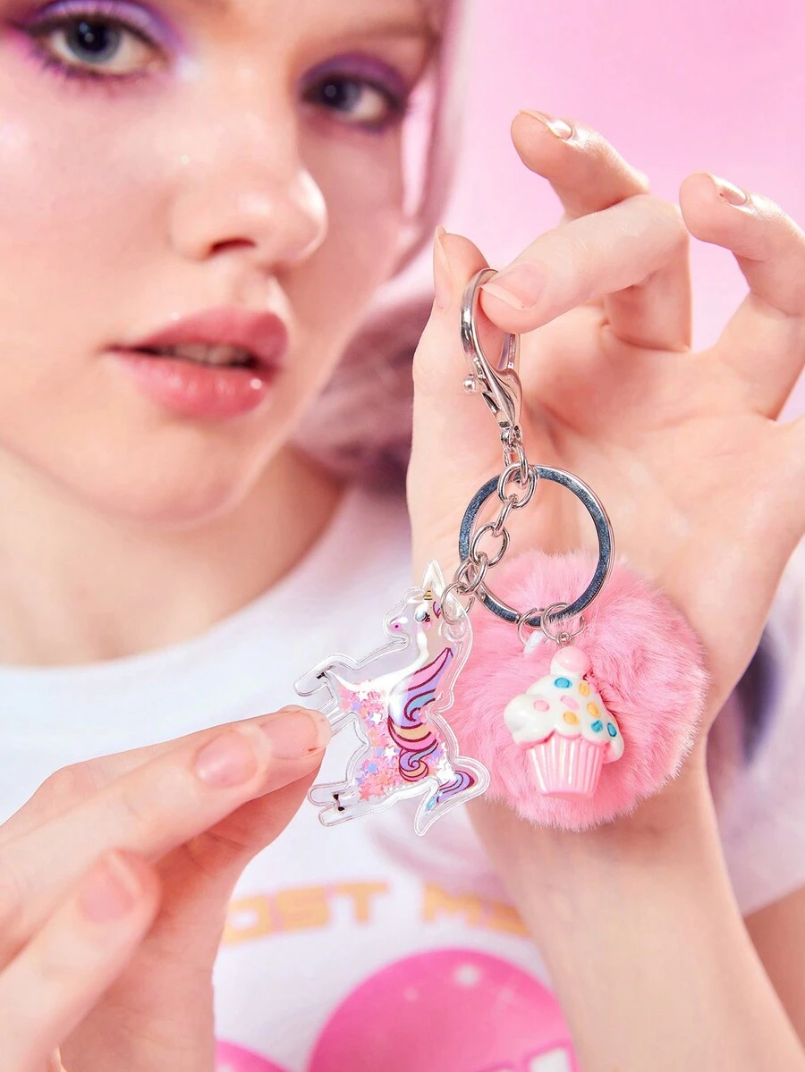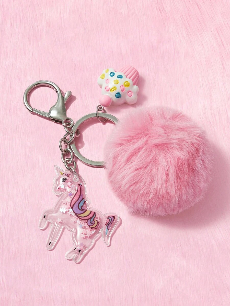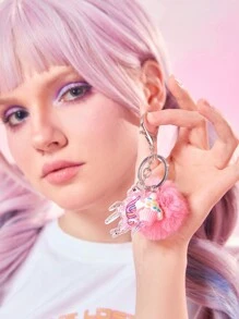 Kawaii Mujer 1 pieza Llavero con unicornio & con diseño de pompón