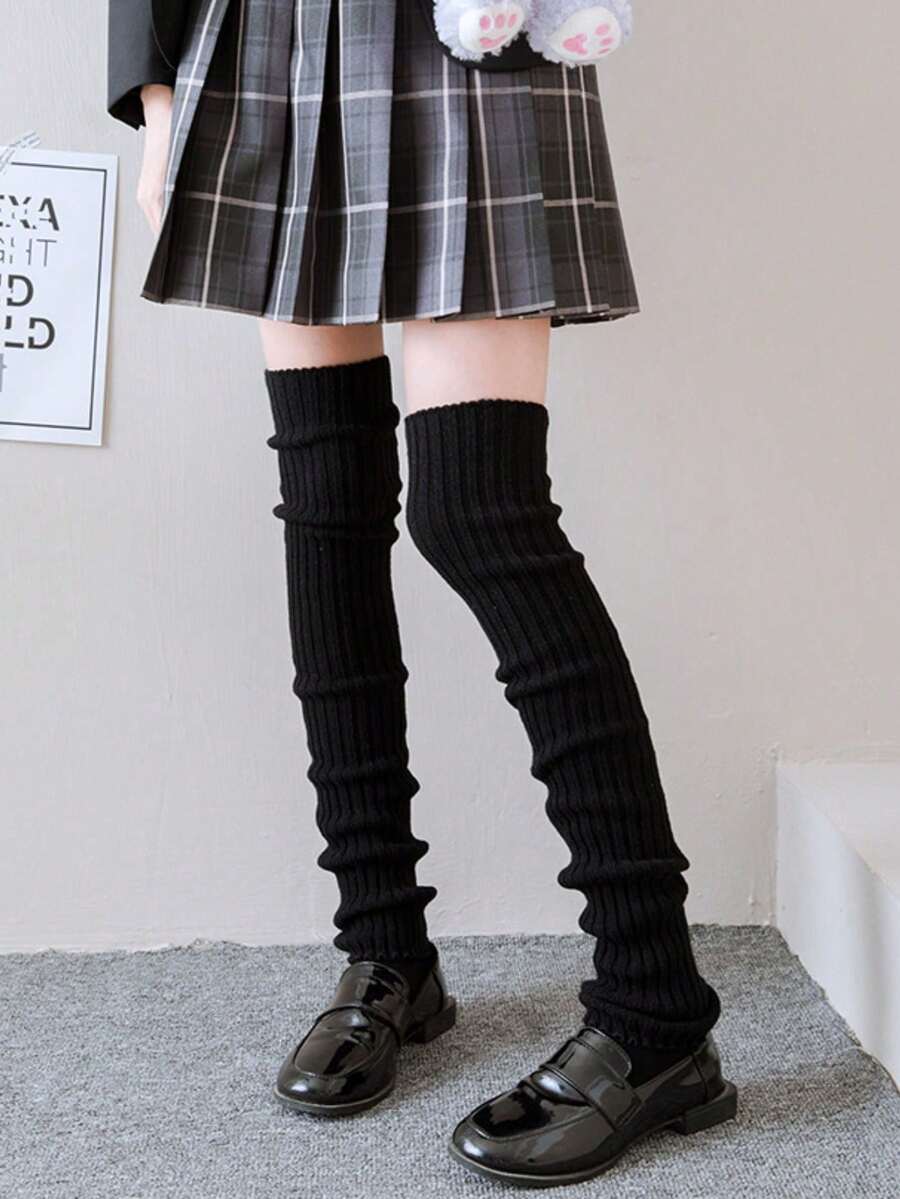 Kawaii (2 Pares) Calentadores Extra Largos Para Las Piernas De Mujer En Bloque De Color Negro Y Blanco