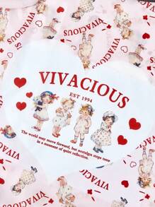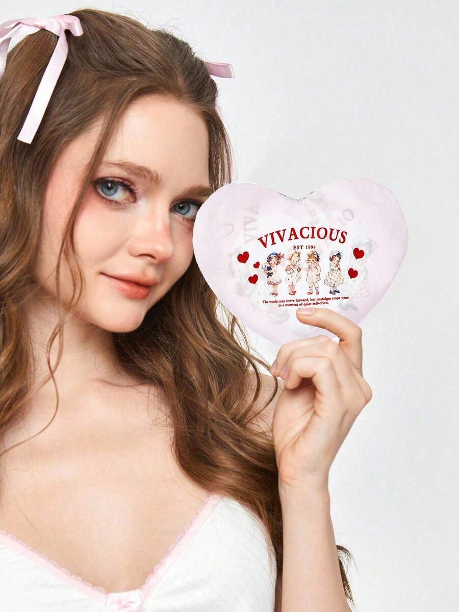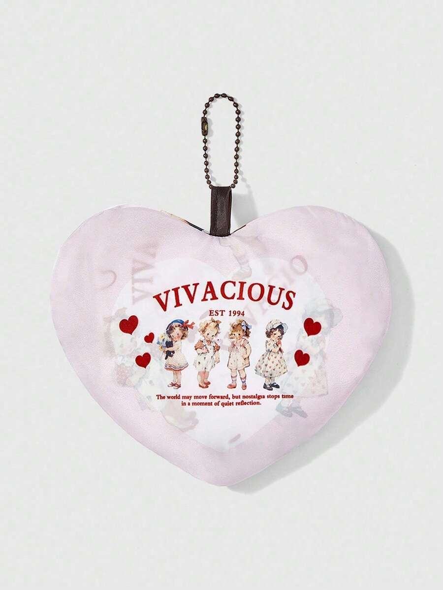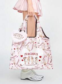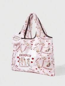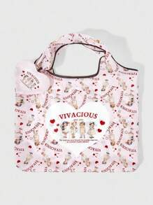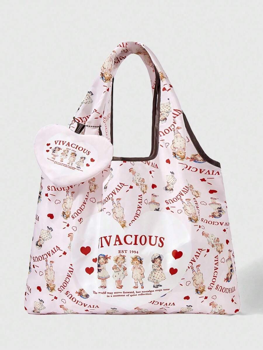 Kawaii Bolso de mano plegable con capacidad grande, diseño de niña con corazón de estilo de dibujos animados, color rosa, con monedero