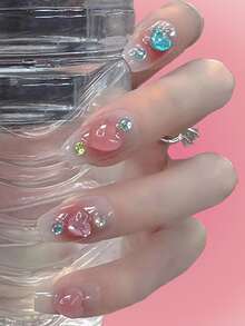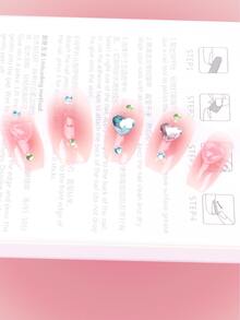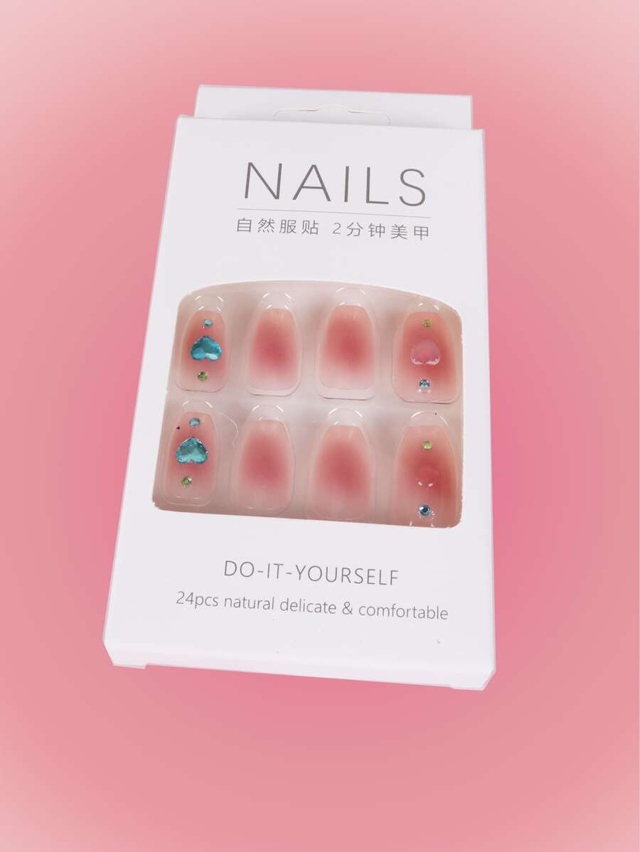 Kawaii 24 piezas Uña postiza 3d con adorno de corazón & 1 hoja cinta