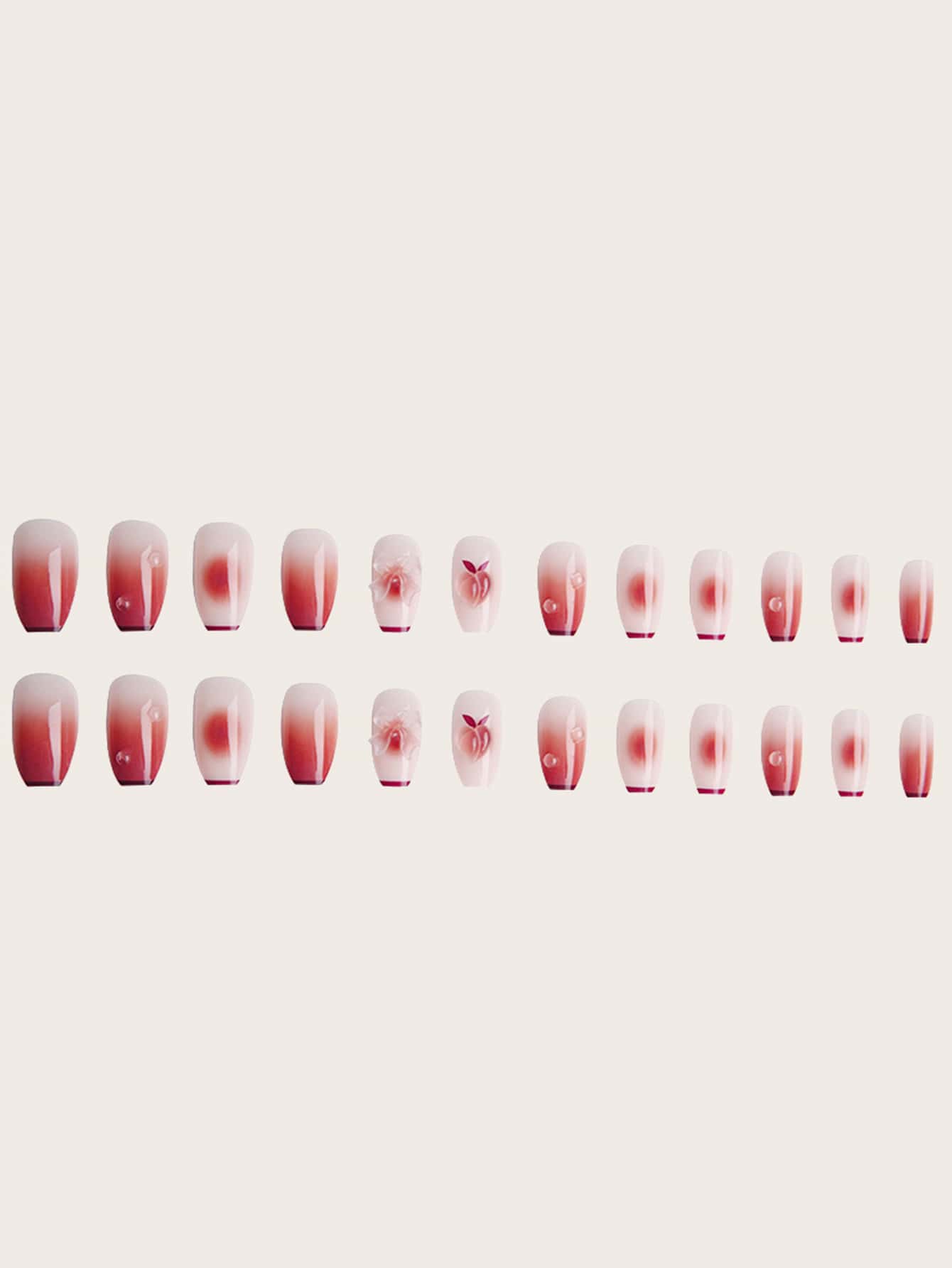 Kawaii 24 piezas Uña postiza con diseño de lazo