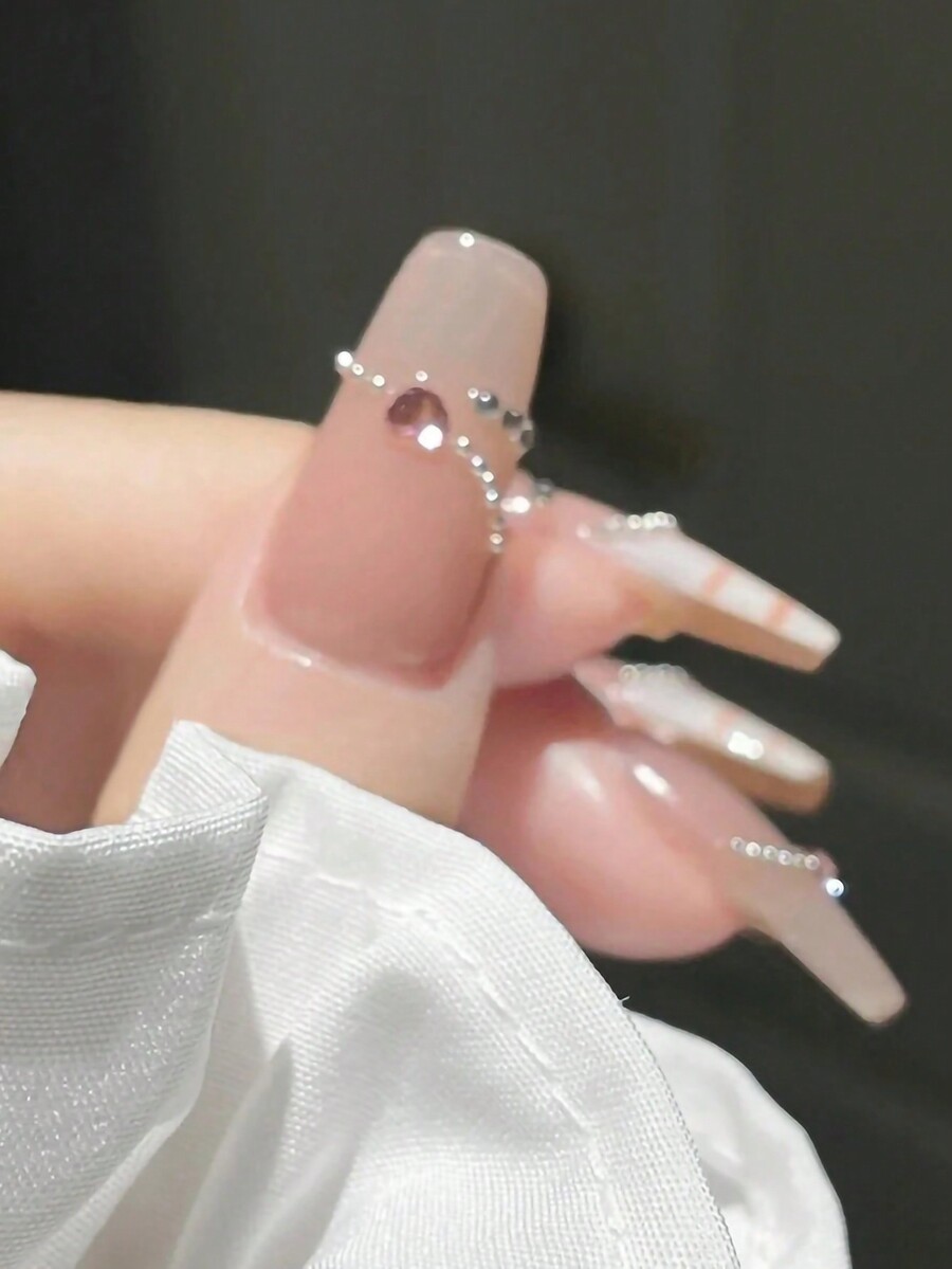 Kawaii 24 piezas largo ataúd 3d con adorno de corazón Uña postiza & 1 hoja de cinta para uñas