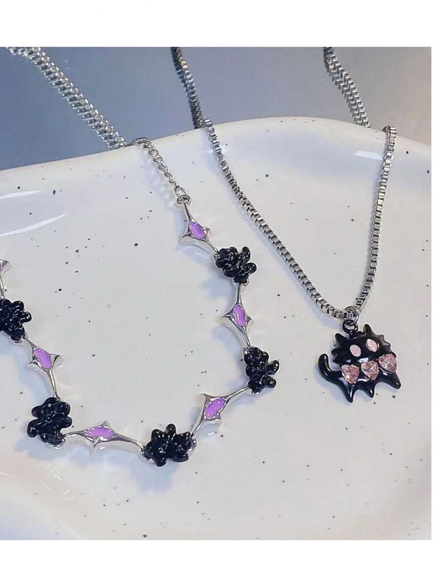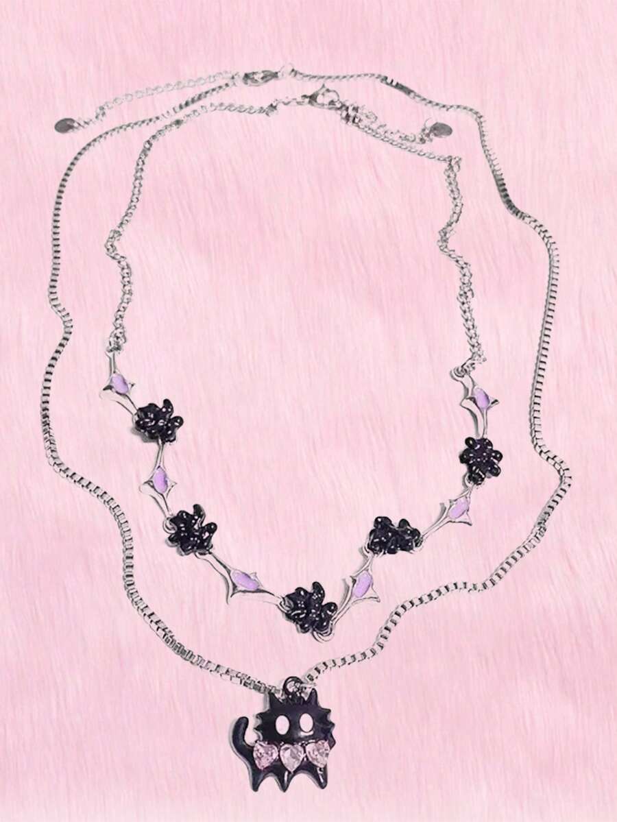Kawaii 2 piezas Collar moda acero titanio floral & con diseño de dibujos animados para mujeres para decoración diaria