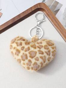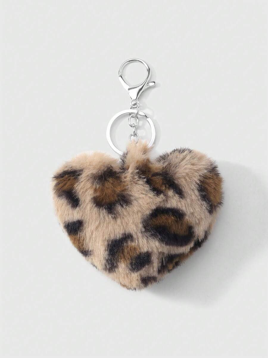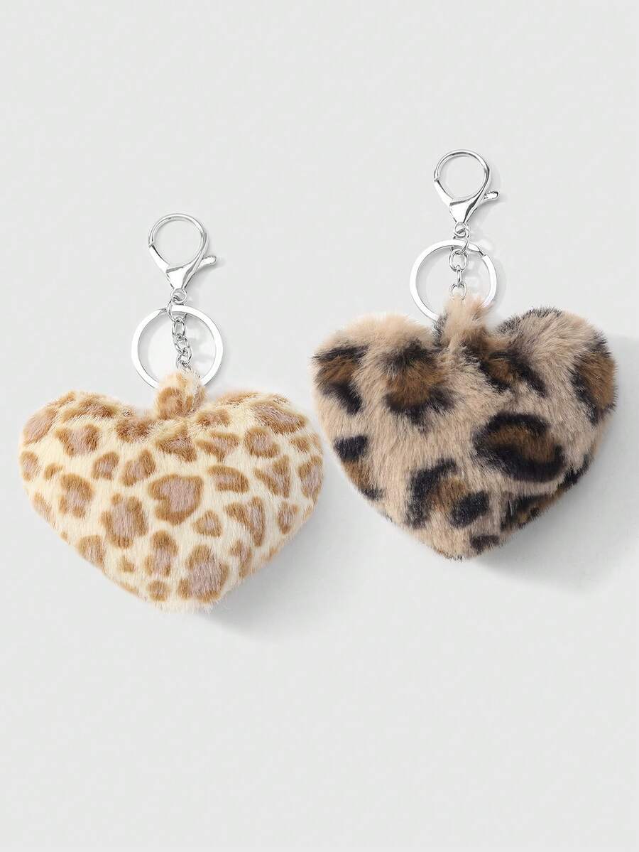 Kawaii Set de 2 llaveros con forma de leopardo y corazón de piel sintética, accesorios de moda adecuados para parejas, hermanas, uso diario, regalo para fiestas