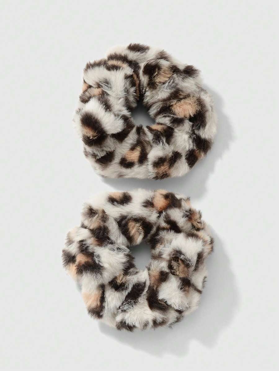 Kawaii Set de 2 scrunchies de pelo de estilo vintage y elegante con estampado de leopardo de alta calidad, aptos para uso diario de mujeres, regalo para fiestas, sujetadores de coleta, elásticos para el pelo, cuerda para el pelo