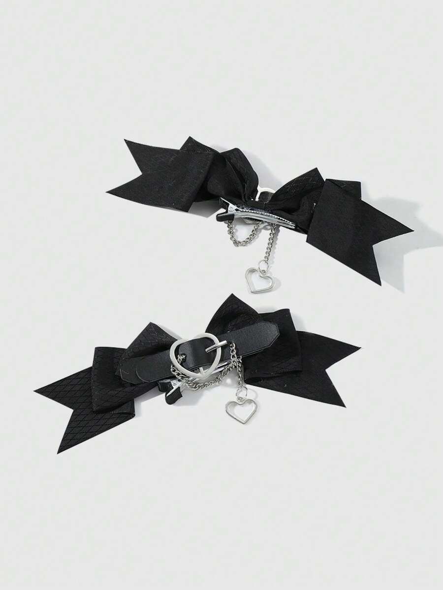 Kawaii 2 piezas de clip para cabello decorados con lazo y corazón para mujer, estilo urbano