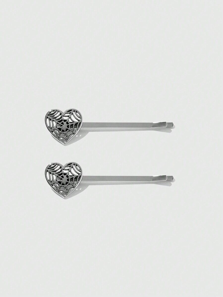 Kawaii 2 Piezas Pinza De Pelo De Aleación De Zinc Con Decoración De Corazón Y Tela De Araña Para Mujeres