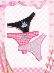 Kawaii 3 piezas Set bragas con letra con estampado de dibujos animados de guingán de malla