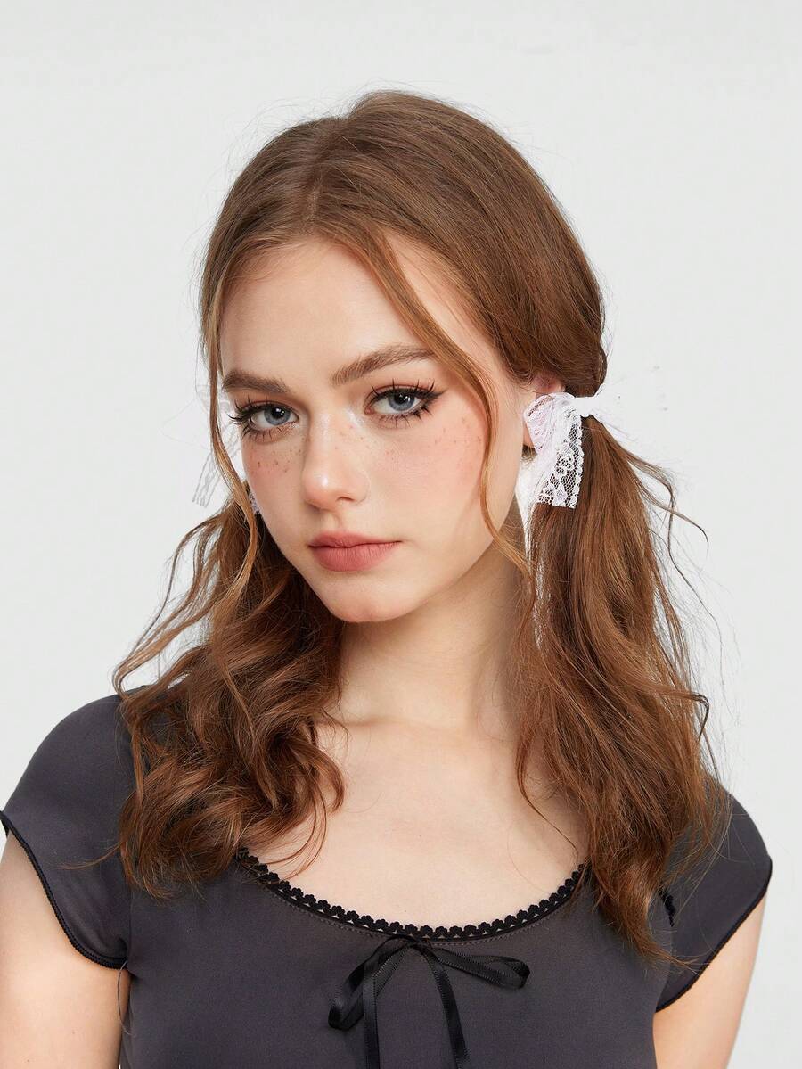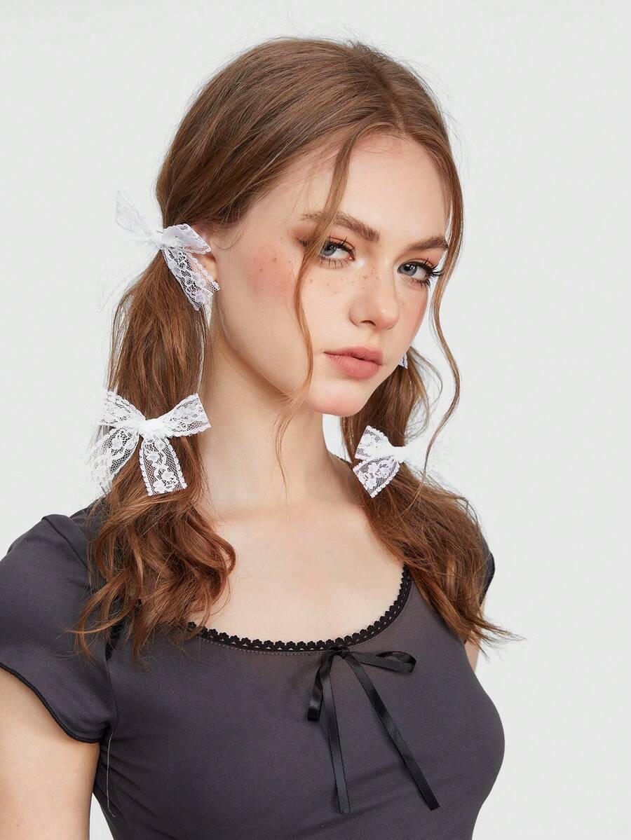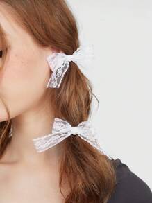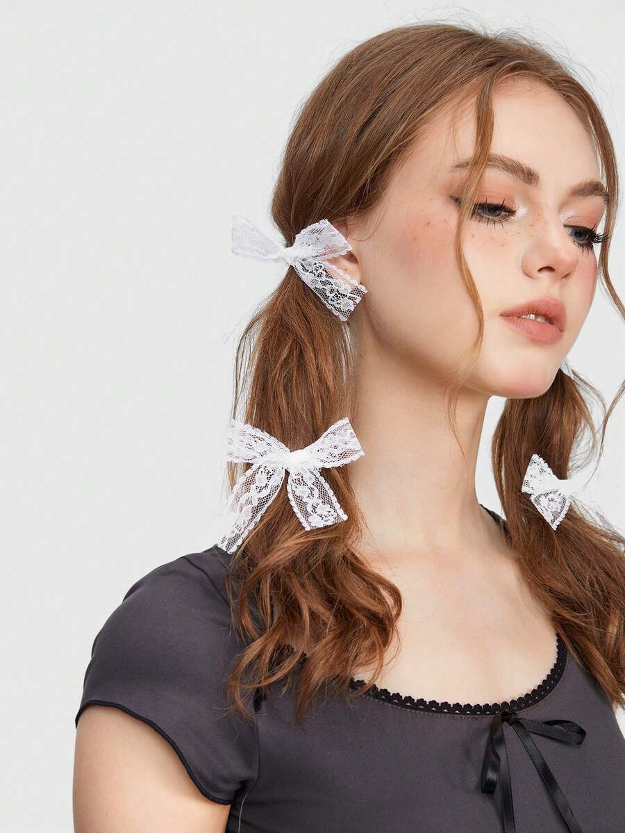 Kawaii 4 piezas clips de pelo estilo ballet con lindo lazo de encaje de Lolita, versátiles y etéreos.