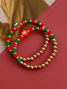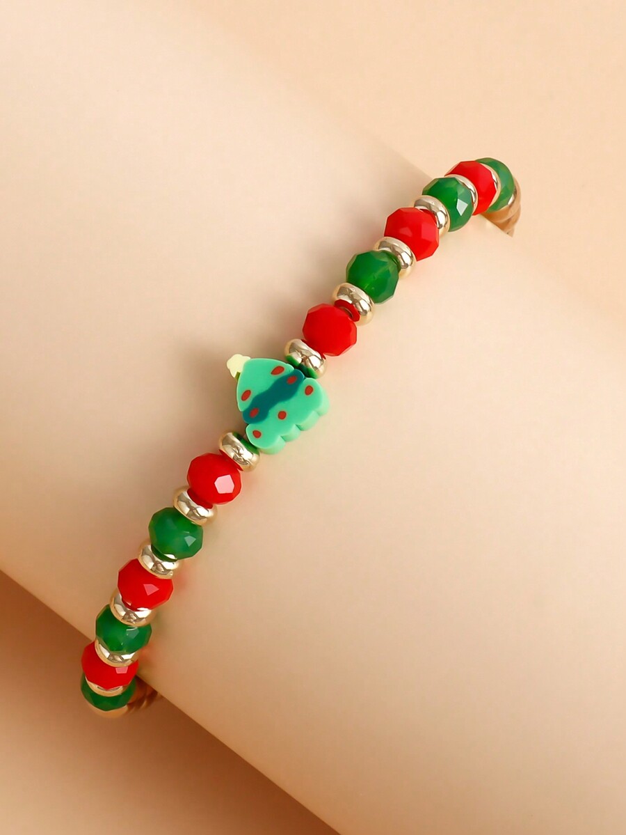 Kawaii 4 piezas Pulsera con cuenta dulce árbol de Navidad & Papá Noel adorno para mujeres para decoración diaria